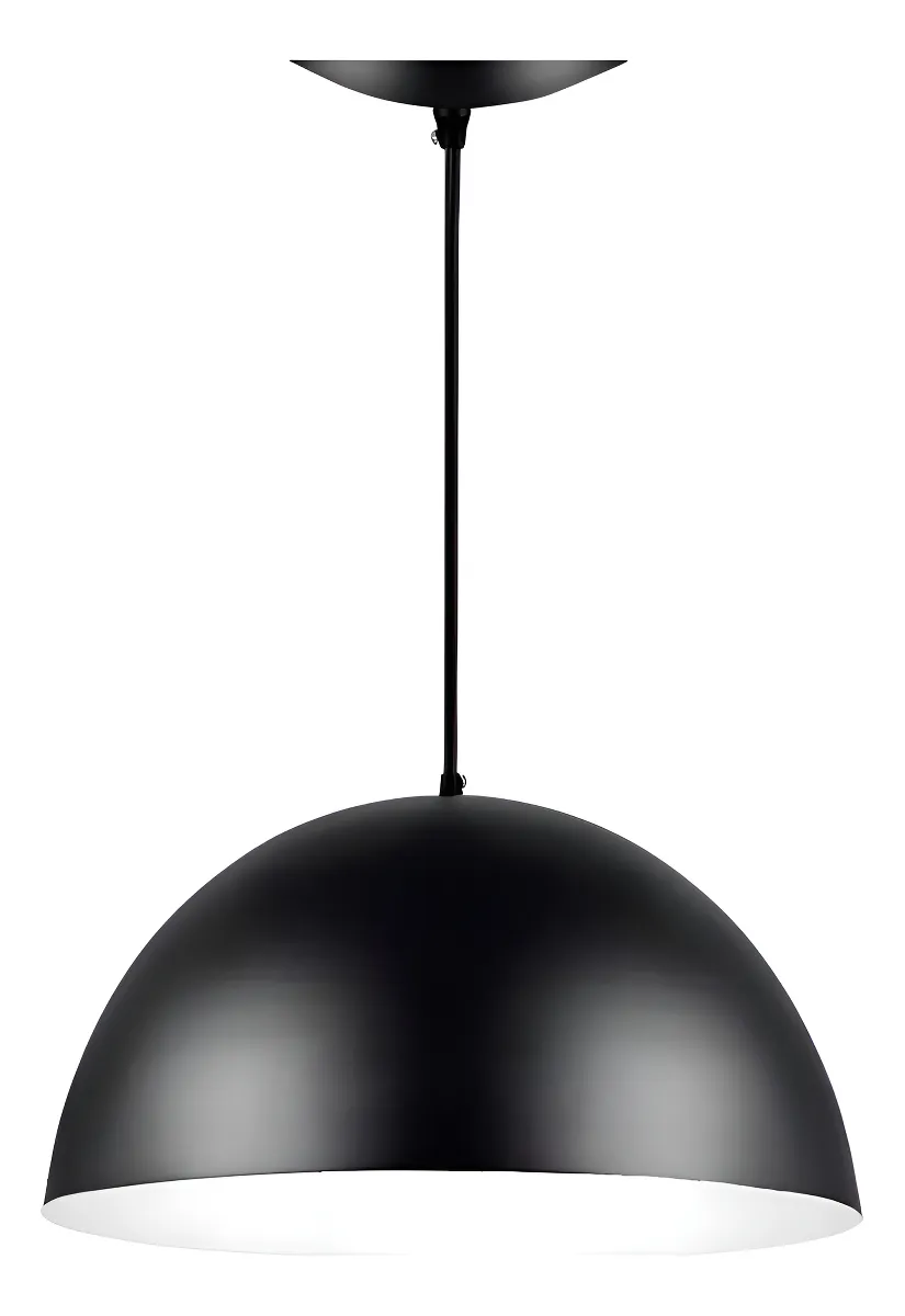 Pendente Meia Lua 34cm Luminária Alumínio Preto Textura C/ Branco